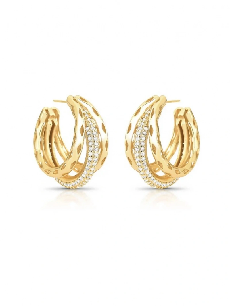 Brinco Meia Argola Quatro Voltas Cravejado Ouro