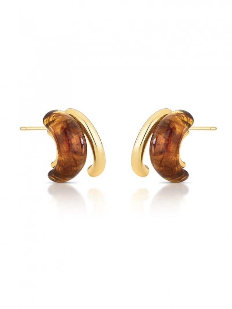 Brinco Meia Argola Duplo Resina Marrom Tartaruga
