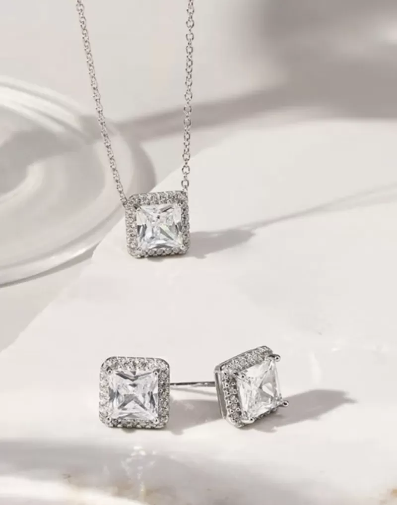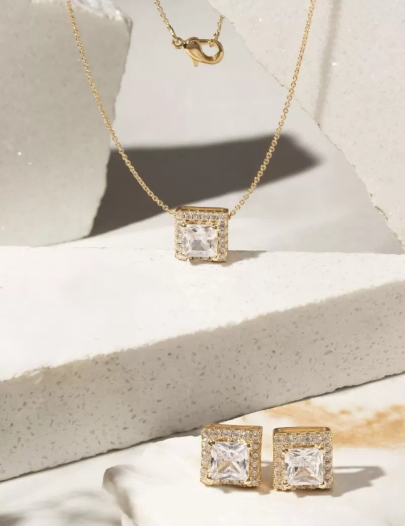 Conjunto Brinco e Colar Quadrado Zircônia