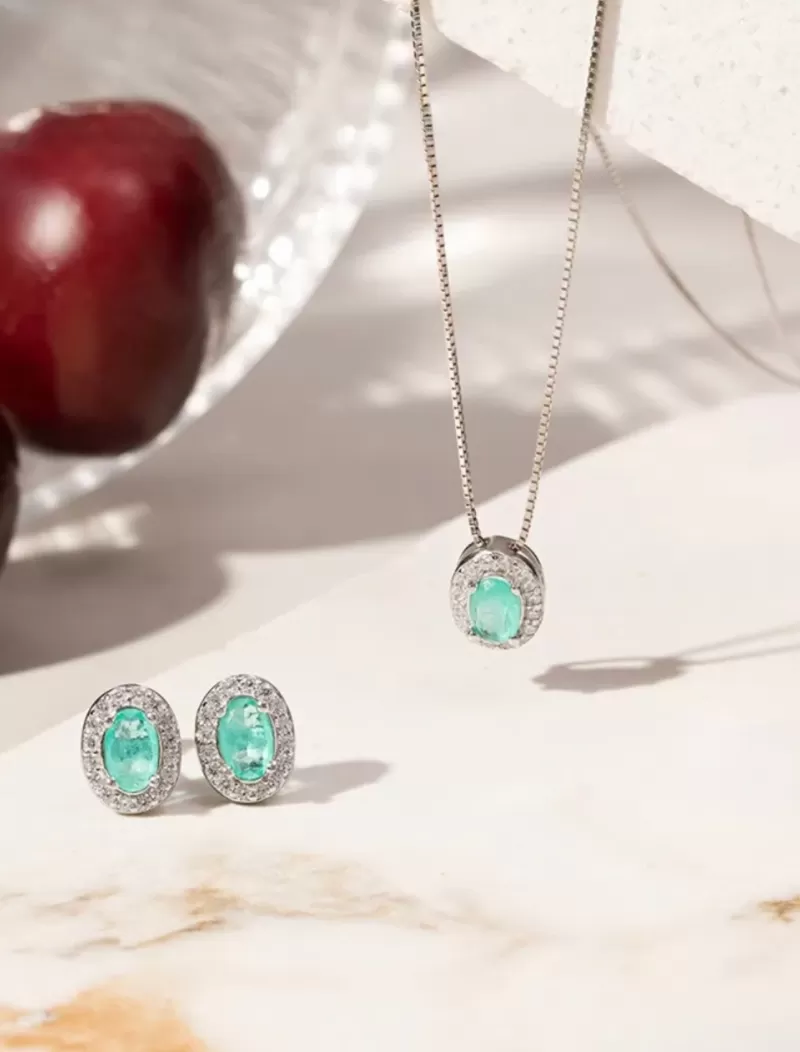 Conjunto Brinco e Colar Turmalina Fusion Prata 925
