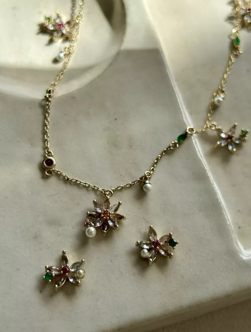 Conjunto Brinco e Colar Jardim Florido