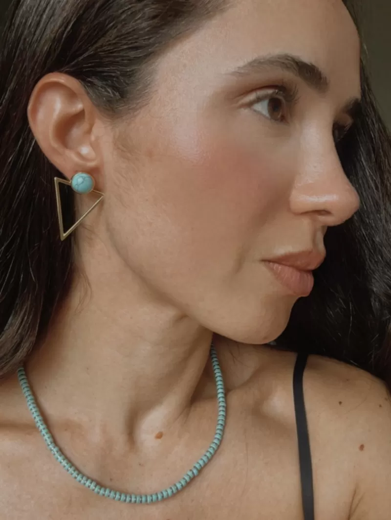 Brinco Triângulo Botão Turquesa
