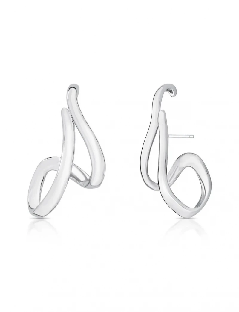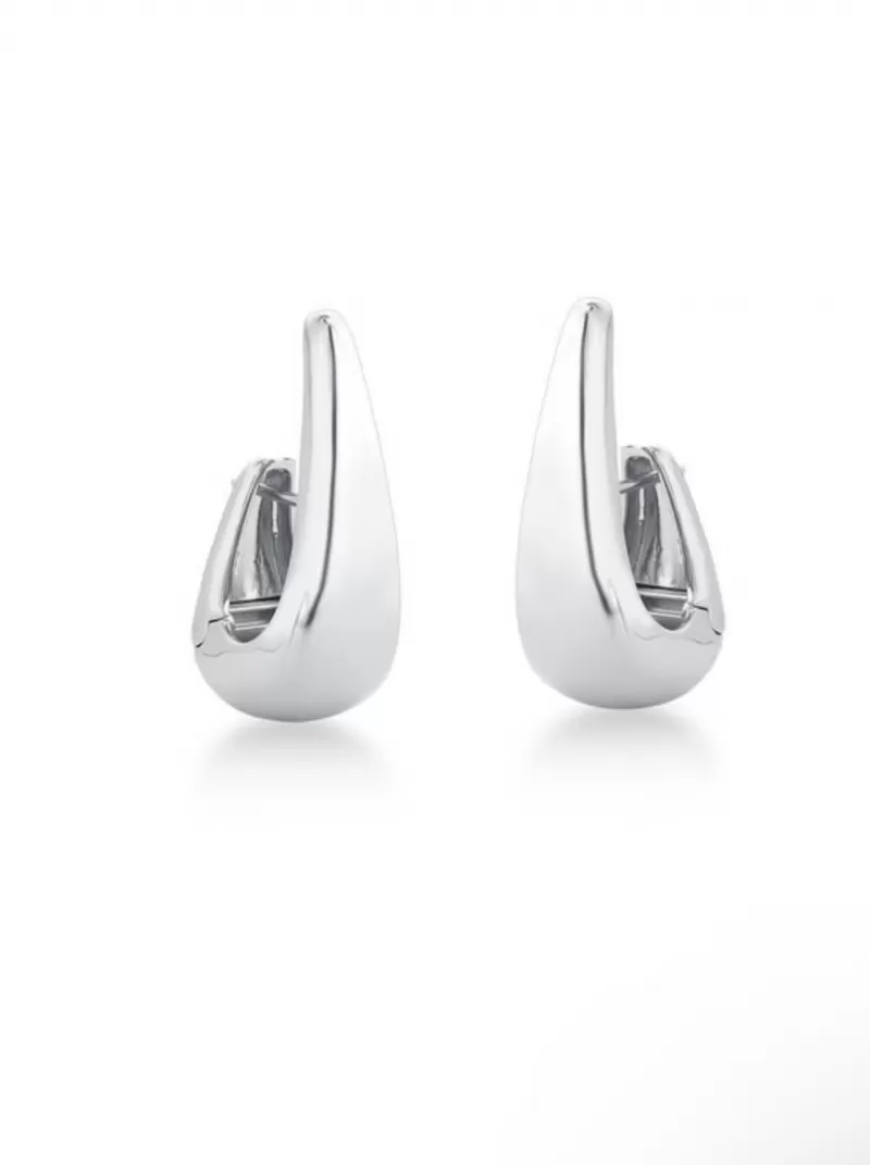 Brinco Ear Hook Curvo Vazado Ródio Branco