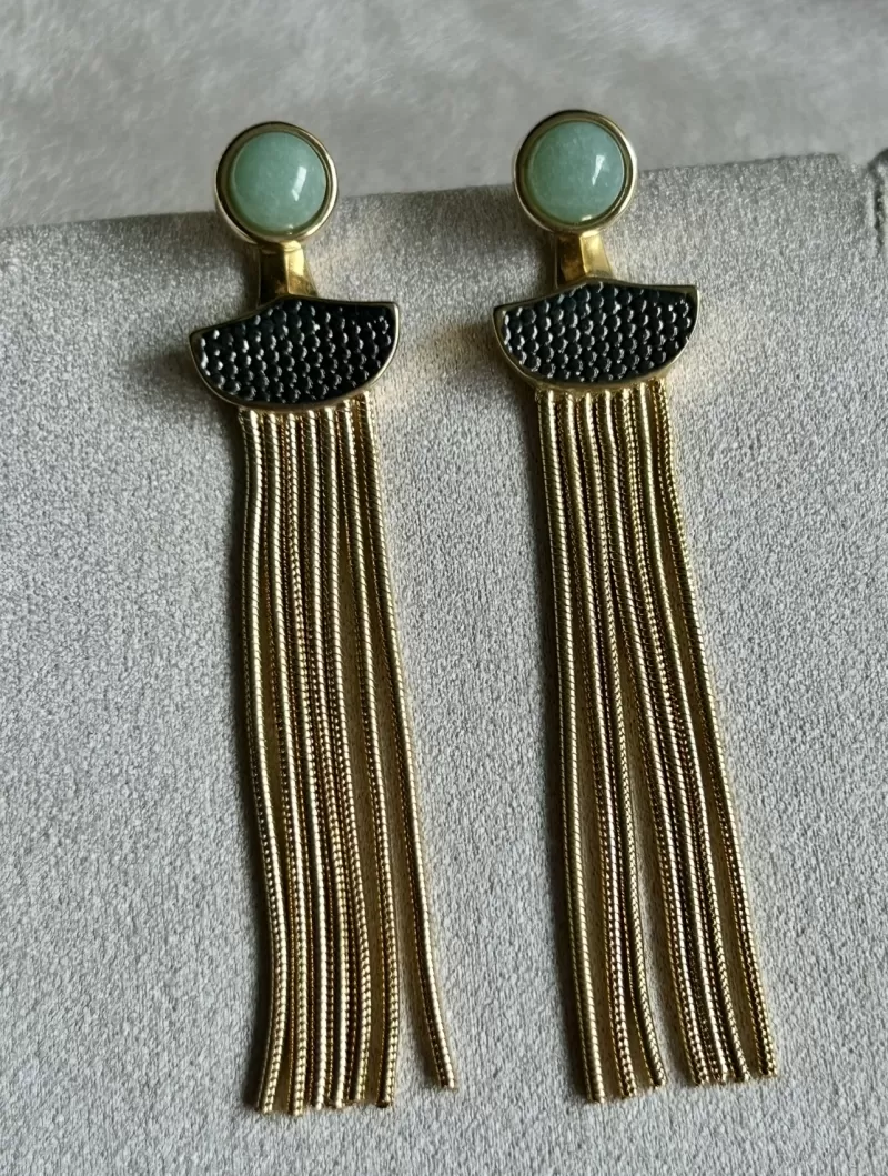 Brinco Franja Quartzo Verde