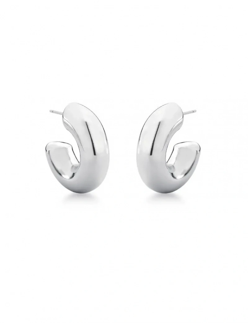 Brinco Meia Argola Puffer Ródio Branco P